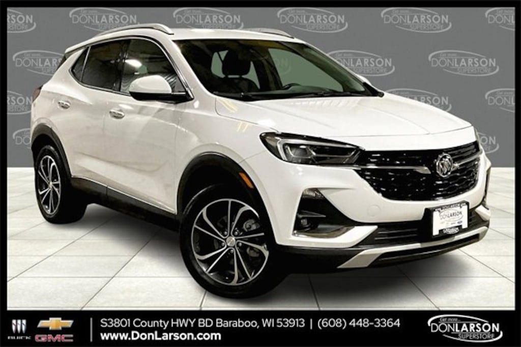 Recent Arrival! Local Trade, One Owner, GM Certified, Remote Start, Backup Camera, Portable Audio Connection, Power Locks, Power Windows, AWD / 4WD / 4X4, Buick Certified Pre-Owned Certified, 18 Machined Aluminum Wheels, 2 USB Ports w/Auxiliary Input Jack, 2-Way Front Passenger Power Lumbar, 2-Way Power Driver Lumbar Control, 3.17 Final Drive Axle Ratio, 4-Wheel Disc Brakes, 6 Speakers, 6-Way Power Front Passenger Seat Adjuster, 8-Way Power Driver Seat Adjuster, ABS brakes, Air Conditioning, Alloy wheels, AM/FM radio: SiriusXM, Auto High-beam Headlights, Auto-dimming Rear-View mirror, Automatic temperature control, Brake assist, Bumpers: body-color, Compass, Delay-off headlights, Driver door bin, Driver vanity mirror, Dual front impact airbags, Dual front side impact airbags, Electronic Stability Control, Emergency communication system: OnStar and Buick connected services capable, Enhanced Performance 6-Speaker System, Front anti-roll bar, Front Bucket Seats, Front Center Armrest, Front dual zone A/C, Front fog lights, Front License Plate Bracket, Front reading lights, Front wheel independent suspension, Fully automatic headlights, Garage door transmitter, Heated door mirrors, Heated Driver & Front Passenger Seats, Heated front seats, Heated steering wheel, Illuminated entry, Knee airbag, Leather-Appointed Seat Trim, Low tire pressure warning, Memory seat, Occupant sensing airbag, Outside temperature display, Overhead airbag, Overhead console, Panic alarm, Passenger door bin, Passenger vanity mirror, Power door mirrors, Power driver seat, Power passenger seat, Power steering, Power windows, Preferred Equipment Group 1SL, Radio data system, Radio: 8 Diagonal Buick Infotainment System, Rear reading lights, Rear seat center armrest, Rear side impact airbag, Rear window defroster, Rear window wiper, Remote keyless entry, Ride & Handling Suspension, Roof rack: rails only, Security system, SiriusXM Radio, Speed control, Speed-sensing steering, Split folding rear seat, Spoiler, Steering wheel mounted audio controls, Tachometer, Telescoping steering wheel, Tilt steering wheel, Traction control, Trip computer, Variably intermittent wipers, Wireless Apple CarPlay/Wireless Android Auto, Android Auto, CarPlay. Certified. Clean CARFAX. CARFAX One-Owner.Awards:* 2021 IIHS Top Safety Pick with specific headlightsJUST GET MORE AT THE DON LARSON SUPERCENTER! Proudly servicing Baraboo, Wisconsin Dells, Portage, North Freedom, Middleton, Madison, Mauston, Lodi, Lake Delton, Waunakee, De Forest, Sun Prairie, and Reedsburg!Please call today to schedule your test drive on this ... 2021 Buick Encore GX Essence ECOTEC 1.3L Turbo Summit White