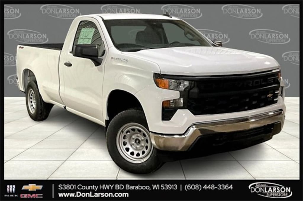 2026 Chevrolet Silverado 1500 WT 10-Speed Automatic, 4WD, Jet Black Vinyl, 2 Speakers, 2-Speaker Audio System, 220 Amp Alternator, 3.5 Monochromatic Display Driver Info Center, 4-Way Manual Driver Seat Adjuster, 4-Wheel Disc Brakes, 40/20/40 Front Split Bench Seat, ABS brakes, Air Conditioning, Apple CarPlay/Android Auto, Auto High-beam Headlights, Auto-Locking Rear Differential, Automatic Emergency Braking, Auxiliary External Transmission Oil Cooler, Black (Semi-Gloss) Front Bumper, Black (Semi-Gloss) Rear Bumper, Bluetooth® For Phone, Brake assist, Compass, Deep-Tinted Glass, Delay-off headlights, Driver door bin, Dual front impact airbags, Dual front side impact airbags, Electric Rear-Window Defogger, Electronic Cruise Control, Electronic Stability Control, Emergency communication system: OnStar, External Engine Oil Cooler, Following Distance Indicator, Forward Collision Alert, Front anti-roll bar, Front Center Armrest w/Storage, Front Chrome Bumper, Front Frame-Mounted Black Recovery Hooks, Front License Plate Kit, Front Pedestrian Braking, Front reading lights, Front wheel independent suspension, Fully automatic headlights, HD Rear Vision Camera, Heated door mirrors, Heated Power-Adjustable Outside Mirrors, Heavy-Duty Air Filter, Hitch Guidance, Illuminated entry, Inside Rearview Mirror with Tilt, Integrated Trailer Brake Controller, IntelliBeam Automatic High Beam on/Off, Lane Keep Assist with Lane Departure Warning, Locking Tailgate, Low tire pressure warning, Manual Tailgate Function with No EZ Lift, Manual Tilt Wheel Steering Column, Occupant sensing airbag, OnStar Services Capable, Outside temperature display, Overhead airbag, Overhead console, Panic alarm, Passenger door bin, Passenger vanity mirror, Power door mirrors, Power Front Windows with Driver Express Up/Down, Power Front Windows with Passenger Express Down, Power steering, Power windows, Preferred Equipment Group 1WT, Premium audio system: Chevrolet Infotainment 3, Radio data system, Radio: Chevrolet Infotainment 3 System, Rear Chrome Bumper, Rear reading lights, Rear step bumper, Remote Keyless Entry, Remote keyless entry, Rubberized-Vinyl Floor Covering, SiriusXM Delete, Snow Plow Prep Package, Solar Absorbing Tinted Glass, Speed control, Speed-sensing steering, Standard Suspension Package, Standard Tailgate, Tachometer, Teen Driver, Tilt steering wheel, Tire Pressure Monitoring System, Traction control, Trailering Package, Trip computer, Variably intermittent wipers, Vinyl Seat Trim, Voltmeter, Wheels: 17 x 8 Ultra Silver Painted Steel, Wi-Fi Hot Spot Capable, WT Convenience Package, WT Value Package, 10-Speed Automatic, 4WD, Jet Black Vinyl. Price includes: $1500 - Bonus Cash. Exp. 01/02/2026 $3250 - Customer Cash. Exp. 01/02/2026