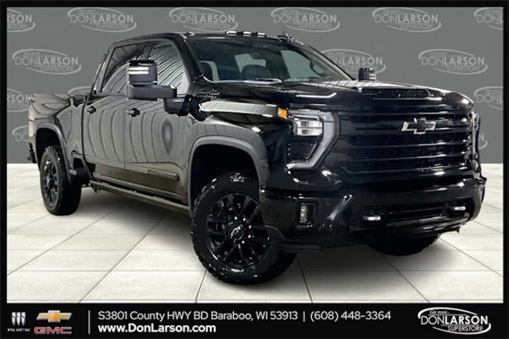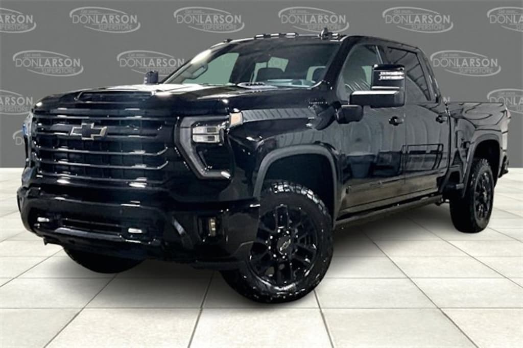 2026 Chevrolet Silverado 2500HD High Country 10-Speed Automatic, 4WD, Jet Black Leather, 10-Way Power Driver Seat Adjuster with Lumbar, 10-Way Power Passenger Seat Adjuster with Lumbar, 120-Volt Bed Mounted Power Outlet, 120-Volt Interior Power Outlet, 15 Diagonal Multicolor Head-Up Display, 170 Amp Alternator, 3.73 Rear Axle Ratio, 4-Wheel Disc Brakes, 6 Rectangular Chromed Tubular Assist Steps, 7 Speakers, 720 Cold-Cranking Amps Heavy-Duty Battery, ABS brakes, Air Conditioning, Alloy wheels, AM/FM radio: SiriusXM with 360L, Apple CarPlay/Android Auto, Auto High-beam Headlights, Auto-dimming door mirrors, Auto-Dimming Inside Rear-View Mirror, Auto-dimming Rear-View mirror, Automatic temperature control, Bed View Camera with Two Trailer Camera Provisions, Black Chevytec Spray-on Bedliner, Black Grille Bar with Chevy Black Bow Tie, Bluetooth® For Phone, Body-Color Mirror Caps, Bodyside moldings, BOSE Premium 7-Speaker Sound System, Brake assist, Bumpers: body-color, Chevrolet Connected Access Capable, Chrome Door Handles, Chrome Mirror Caps, Color-Keyed Carpeting Floor Covering, Compass, Deep-Tinted Glass, Delay-off headlights, Driver door bin, Driver Memory, Driver vanity mirror, Dual front impact airbags, Dual front side impact airbags, Durabed Pickup Bed, Electric Rear-Window Defogger, Electronic Stability Control, Emergency communication system: OnStar, Floor-Mounted Center Console, Front anti-roll bar, Front Bucket Seats, Front Carpeted Floor Mats, Front Center Armrest, Front Chrome Recovery Hooks, Front dual zone A/C, Front fog lights, Front LED Fog Lamps, Front License Plate Kit, Front Rain-Sensing Wipers, Front reading lights, Front wheel independent suspension, Fully automatic headlights, Garage door transmitter, Genuine wood console insert, Genuine wood dashboard insert, Genuine wood door panel insert, Gooseneck/5th Wheel Prep Package, Heated 2nd Row Outboard Seats, Heated door mirrors, Heated Driver and Front Outboard Passenger Seating, Heated front seats, Heated rear seats, Heated Steering Wheel, Heated steering wheel, High Country Premium Package, High Gloss Black Door Handles, Hill Descent Control, Hitch Guidance with Hitch View, Illuminated entry, in-Vehicle Trailering App System, Keyless Open and Start, LED Cargo Area Lighting, LED Smoked Amber Roof Marker Lamps, Low tire pressure warning, Manual Tilt and Telescoping Steering Column, Memory seat, Midnight Edition, Occupant sensing airbag, Off-Road Suspension, OnStar Services Capable, Outside temperature display, Overhead airbag, Overhead console, Panic alarm, Passenger door bin, Passenger vanity mirror, Perforated Leather Seat Trim, Polished Exhaust Tip, Power Door Locks, Power door mirrors, Power driver seat, Power Front Windows with Driver Express Up/Down, Power Front Windows with Passenger Express Up/Down, Power passenger seat, Power Rear Windows with Express Down, Power Sliding Rear Window with Defogger, Power steering, Power Sunroof, Power Up/Down Tailgate Function with Power Lock and Release, Power windows, Power-Retractable Black Assist Steps, Preferred Equipment Group 3LZ, Premium audio system: Chevrolet Infotainment 3 Premium, Push Button Start, Radio: Chevrolet Infotainment 3 Premium System, Rain sensing wipers, Rear Camera Mirror, Rear Carpeted Floor Mats, Rear Cross Traffic Alert, Rear reading lights, Rear seat center armrest, Rear step bumper, Rear Wheelhouse Liners, Rear window defroster, Remote keyless entry, Remote Vehicle Starter System, Security system, SiriusXM with 360L Trial Subscription, Speed control, Speed-sensing steering, Split folding rear seat, Standard Tailgate, Steering Wheel Audio Controls, Steering wheel mounted audio controls, Suspension Package, Tachometer, Technology Package, Telescoping steering wheel, Tilt steering wheel, Traction control, Trailer Camera Provisions, Trip computer, Turn signal indicator mirrors, Ultrasonic Front and Rear Park Assist, Unauthorized Ent Price incl