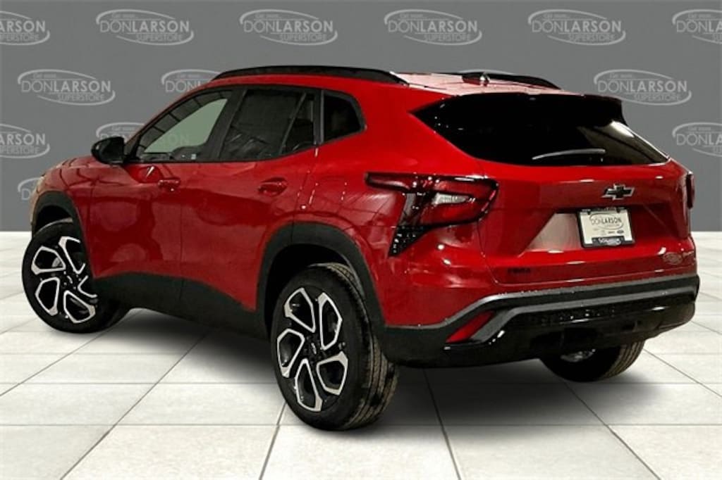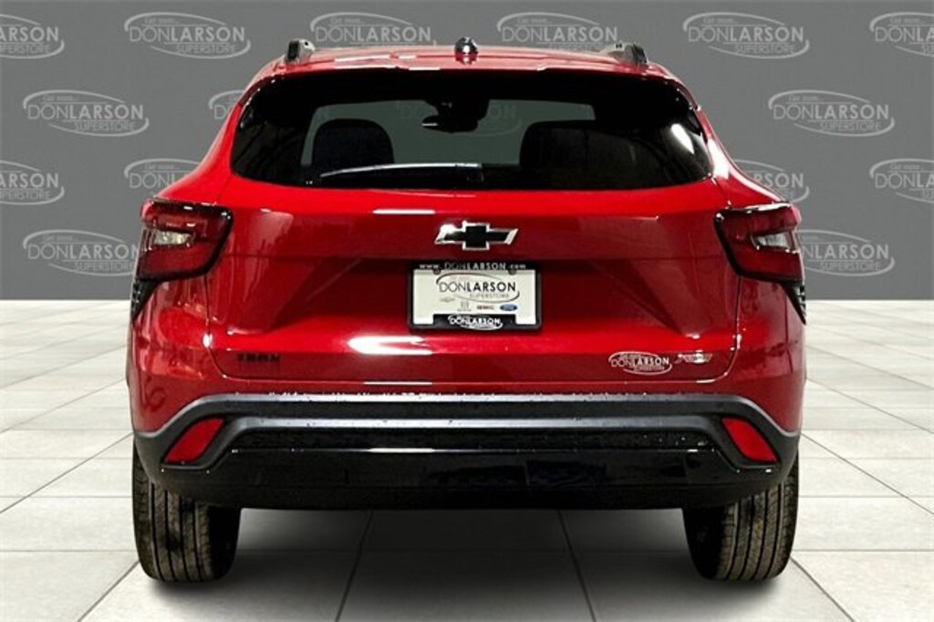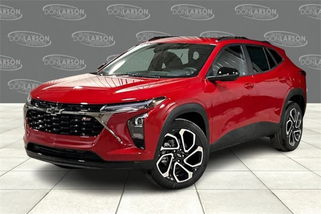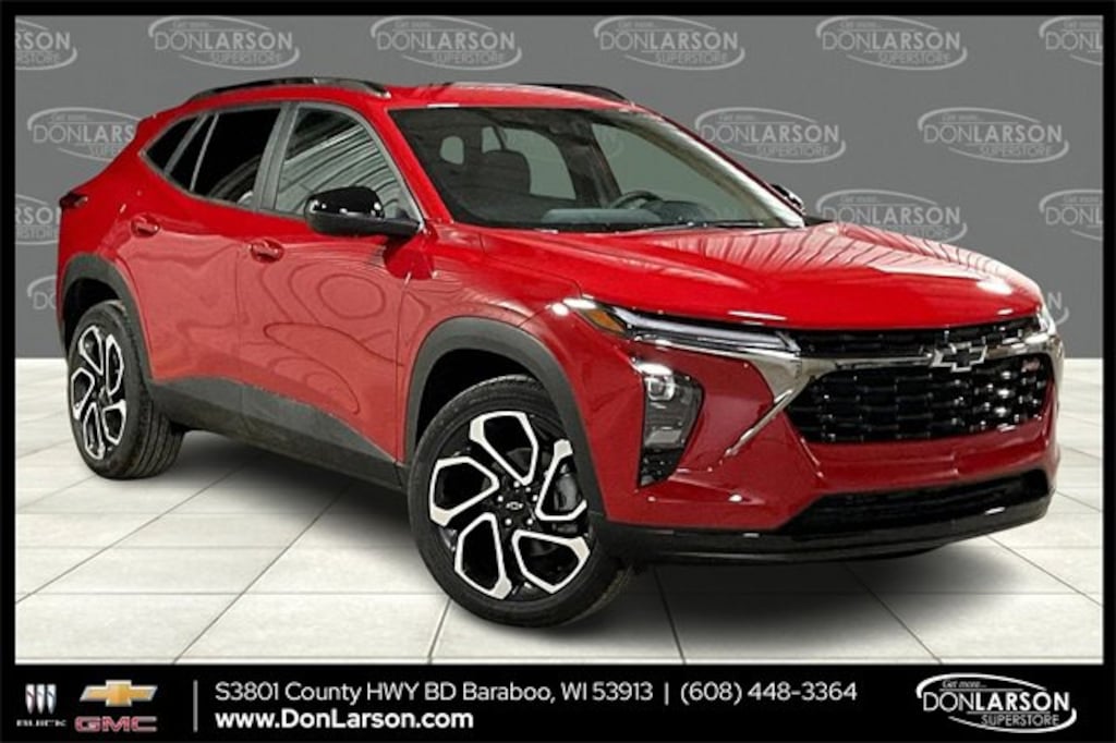 2026 Chevrolet Trax 2RS 2-Way Adjustable Front Head Restraints, 2-Way Power Driver Lumbar Seat Adjuster, 3.50 Final Drive Axle Ratio, 4-Way Manual Front Passenger Seat Adjuster, 4-Wheel Disc Brakes, 6 Speakers, 6-Speaker Audio System Feature, 8-Way Power Driver Seat Adjuster, ABS brakes, Adaptive Cruise Control, Air Conditioning, Alloy wheels, AM/FM radio: SiriusXM, Auto High-beam Headlights, Automatic temperature control, Brake assist, Bumpers: body-color, Compass, Delay-off headlights, Driver Confidence Package, Driver door bin, Driver vanity mirror, Dual front impact airbags, Dual front side impact airbags, Electronic Stability Control, Emergency communication system: OnStar One Essentials, Evotex Seat Trim, Exterior Parking Camera Rear, Front & Rear Jet Black All-Weather Floor Liners (LPO), Front anti-roll bar, Front Bucket Seats, Front Center Armrest, Front reading lights, Front wheel independent suspension, Fully automatic headlights, Heated door mirrors, Heated Driver & Front Passenger Seats, Heated front seats, Heated steering wheel, Illuminated entry, Lane Change Alert w/Side Blind Zone Alert, Leather steering wheel, License Plate Front Mounting Package, Low tire pressure warning, Occupant sensing airbag, Outside temperature display, Overhead airbag, Overhead console, Panic alarm, Passenger door bin, Passenger vanity mirror, Power door mirrors, Power driver seat, Power Sliding Glass Sunroof w/Manual Shade, Power steering, Power windows, Preferred Equipment Group 2RS, Premium audio system: Chevrolet Infotainment 3, Radio data system, Radio: AM/FM Stereo Audio System, Rear Cross Traffic Alert, Rear Park Assist, Rear window defroster, Rear window wiper, Remote keyless entry, Security system, SiriusXM Trial Subscription, Speed control, Split folding rear seat, Spoiler, Sport steering wheel, Steering wheel mounted audio controls, Sunroof Package, Tachometer, Telescoping steering wheel, Tilt steering wheel, Traction control, Trip computer, Variably intermittent wipers, Wheels: 19 Black-Painted Machined Aluminum, Wireless Apple CarPlay/Wireless Android Auto, Wireless Charging. 28/32 City/Highway MPG
