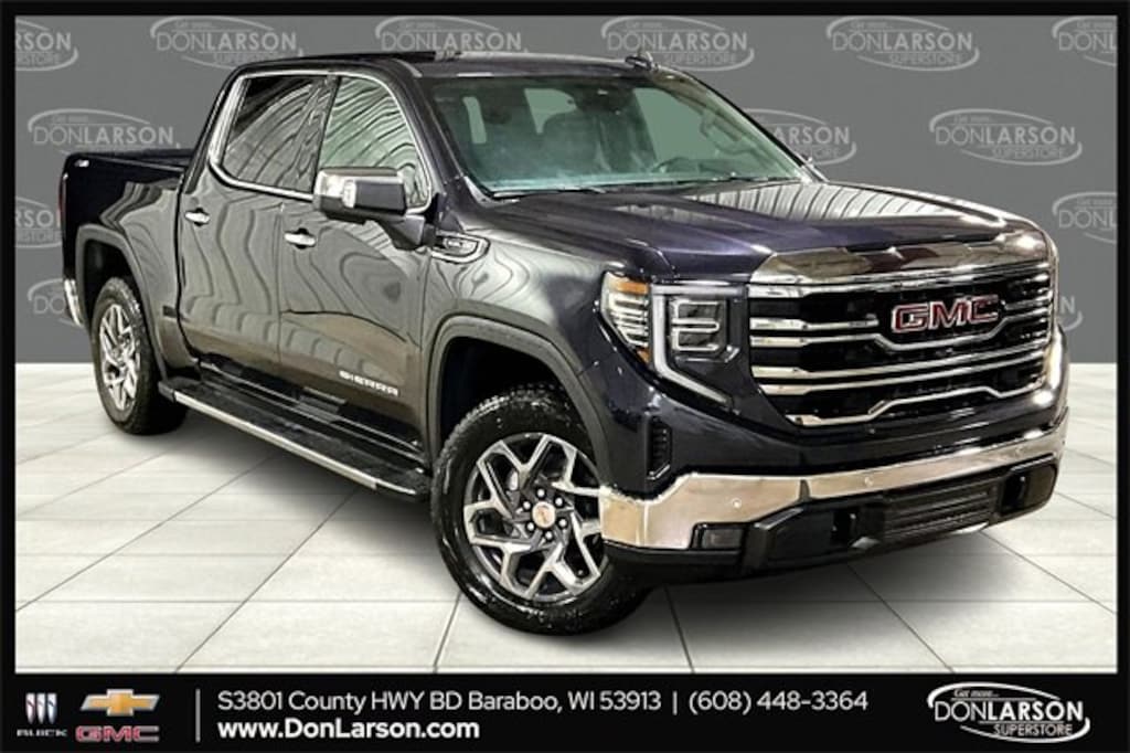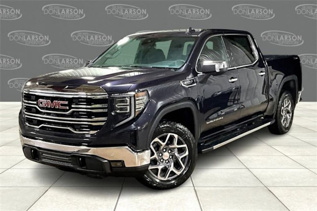 2026 GMC Sierra 1500 SLT 10-Speed Automatic, 4WD, Black Leather, 10-Way Power Driver Seat Adjuster w/Lumbar, 10-Way Power Passenger Seat Adjuster w/Lumbar, 120-Volt Bed Mounted Power Outlet, 120-Volt Interior Power Outlet, 170 Amp Alternator, 2 Charge/Data USB Ports, 2 Charge/Data USB Ports Inside Center Console, 2 Type-C Charge-Only Rear USB Ports, 20 Polished Aluminum Wheels, 3.23 Rear Axle Ratio, 4-Wheel Disc Brakes, 6 Speakers, 6-Speaker Audio System Feature, ABS brakes, Adaptive Cruise Control, Air Conditioning, All-Weather Floor Liner (LPO), Alloy wheels, AM/FM radio: SiriusXM with 360L, Apple CarPlay/Android Auto, Auto High-beam Headlights, Auto-dimming door mirrors, Auto-dimming Rear-View mirror, Auto-Locking Rear Differential, Automatic Emergency Braking, Automatic temperature control, Auxiliary External Transmission Oil Cooler, Brake assist, Buckle to Drive, Bumpers: chrome, Chrome Header & Chrome Grille Insert Bars, Chrome Wheel To Wheel Assist Steps, Color-Keyed Carpeting Floor Covering, Compass, Deep-Tinted Glass, Delay-off headlights, Driver door bin, Driver Memory, Driver vanity mirror, Dual Exhaust System, Dual front impact airbags, Dual front side impact airbags, Electric Rear-Window Defogger, Electronic Precision Shift, Electronic Stability Control, Emergency communication system: OnStar, Floor-Mounted Center Console, Following Distance Indicator, Forward Collision Alert, Front & Rear Black Molded Splash Guards (LPO), Front 40/20/40 Split-Bench Seat, Front anti-roll bar, Front Bucket Seats, Front Center Armrest w/Storage, Front dual zone A/C, Front fog lights, Front Frame-Mounted Black Recovery Hooks, Front License Plate Kit, Front Pedestrian Braking, Front Rain-Sensing Wipers, Front reading lights, Front wheel independent suspension, Fully automatic headlights, HD Rear Vision Camera, HD Surround Vision, Heated 2nd Row Outboard Seats, Heated door mirrors, Heated Driver & Front Outboard Passenger Seating, Heated front seats, Heated steering wheel, Heavy-Duty Air Filter, High Capacity Suspension Package, Hill Descent Control, Hitch Guidance, Hitch View, Illuminated entry, In-Vehicle Trailering System App, Integrated Trailer Brake Controller, IntelliBeam Automatic High Beam On/Off, Keyless Open & Start, Lane Keep Assist w/Lane Departure Warning, LED Cargo Area Lighting, Low tire pressure warning, Manual Tilt-Wheel & Telescoping Steering Column, Memory seat, Navigation System, Occupant sensing airbag, Off-Road Suspension, OnStar Services Capable, Outside temperature display, Overhead airbag, Overhead console, Panic alarm, Passenger door bin, Passenger vanity mirror, Perf Leather-Appointed Front Outboard Seat Trim, Perimeter Lighting, Power Door Locks, Power door mirrors, Power driver seat, Power Front Passenger Windows w/Express Up/Down, Power Front Windows w/Driver Express Up/Down, Power passenger seat, Power Rake & Telescoping Steering Column, Power Rear Windows w/Express Down, Power Sliding Rear Window w/Rear Defogger, Power steering, Power Sunroof, Power windows, Preferred Equipment Group 4SA, Premium Bose 7-Speaker Sound System, ProGrade Trailering System, Push Button Start, Radio data system, Radio: Premium GMC Infotainment Audio System, Rain sensing wipers, Rear Cross Traffic Braking, Rear Pedestrian Detection, Rear reading lights, Rear seat center armrest, Rear step bumper, Rear Wheelhouse Liners, Rear window defroster, Remote keyless entry, Remote Vehicle Starter System, Safety Alert Seat, Security system, Sierra Safety Plus Package, SiriusXM w/360L Trial Subscription, SLT Convenience Package, SLT Preferred Package, SLT Premium Package, Speed control, Speed-sensing steering, Split folding rear seat, Spray-On Pickup Bedliner w/GMC Logo, Standard Suspension Package, Steering Wheel Audio Controls, Steering wheel mounted audio controls, Tachometer, Telescoping steering wheel, Price includes: $1500 - Bonus Cash. Exp. 01/02/2026 $1500 - Purchase Allowance. Exp.