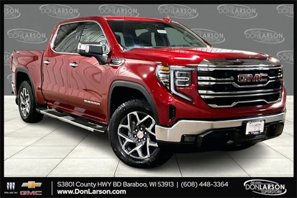 2026 GMC Sierra 1500 SLT 10-Speed Automatic, 4WD, Black Leather, 10-Way Power Driver Seat Adjuster w/Lumbar, 10-Way Power Passenger Seat Adjuster w/Lumbar, 120-Volt Bed Mounted Power Outlet, 120-Volt Interior Power Outlet, 170 Amp Alternator, 2 Charge/Data USB Ports, 2 Charge/Data USB Ports Inside Center Console, 2 Type-C Charge-Only Rear USB Ports, 20 Polished Aluminum Wheels, 3.23 Rear Axle Ratio, 4-Wheel Disc Brakes, 6 Speakers, 6-Speaker Audio System Feature, ABS brakes, Air Conditioning, All-Weather Floor Liner (LPO), Alloy wheels, AM/FM radio: SiriusXM with 360L, Apple CarPlay/Android Auto, Auto High-beam Headlights, Auto-dimming door mirrors, Auto-dimming Rear-View mirror, Auto-Locking Rear Differential, Automatic Emergency Braking, Automatic temperature control, Auxiliary External Transmission Oil Cooler, Brake assist, Buckle to Drive, Bumpers: chrome, Chrome Header & Chrome Grille Insert Bars, Chrome Wheel To Wheel Assist Steps, Color-Keyed Carpeting Floor Covering, Compass, Deep-Tinted Glass, Delay-off headlights, Driver door bin, Driver Memory, Driver vanity mirror, Dual Active Exhaust, Dual Exhaust System, Dual front impact airbags, Dual front side impact airbags, Electric Rear-Window Defogger, Electronic Precision Shift, Electronic Stability Control, Emergency communication system: OnStar, Floor-Mounted Center Console, Following Distance Indicator, Forward Collision Alert, Front & Rear Black Molded Splash Guards (LPO), Front 40/20/40 Split-Bench Seat, Front anti-roll bar, Front Bucket Seats, Front Center Armrest w/Storage, Front dual zone A/C, Front fog lights, Front Frame-Mounted Black Recovery Hooks, Front License Plate Kit, Front Pedestrian Braking, Front Rain-Sensing Wipers, Front reading lights, Front wheel independent suspension, Fully automatic headlights, GMC Protection Package (LPO), HD Rear Vision Camera, Heated door mirrors, Heated Driver & Front Outboard Passenger Seating, Heated front seats, Heated steering wheel, Heavy-Duty Air Filter, High Capacity Suspension Package, Hill Descent Control, Hitch Guidance, Hitch View, Illuminated entry, In-Vehicle Trailering System App, Integrated Trailer Brake Controller, IntelliBeam Automatic High Beam On/Off, Keyless Open & Start, Lane Keep Assist w/Lane Departure Warning, LED Cargo Area Lighting, Low tire pressure warning, Manual Tilt-Wheel & Telescoping Steering Column, Memory seat, Navigation System, Occupant sensing airbag, Off-Road Suspension, OnStar Services Capable, Outside temperature display, Overhead airbag, Overhead console, Panic alarm, Passenger door bin, Passenger vanity mirror, Perf Leather-Appointed Front Outboard Seat Trim, Perimeter Lighting, Power Door Locks, Power door mirrors, Power driver seat, Power Front Passenger Windows w/Express Up/Down, Power Front Windows w/Driver Express Up/Down, Power passenger seat, Power Rake & Telescoping Steering Column, Power Rear Windows w/Express Down, Power steering, Power windows, Preferred Equipment Group 4SA, Premium Bose 7-Speaker Sound System, ProGrade Trailering System, Push Button Start, Radio data system, Radio: Premium GMC Infotainment Audio System, Rain sensing wipers, Rear reading lights, Rear seat center armrest, Rear step bumper, Rear Wheelhouse Liners, Rear window defroster, Remote keyless entry, Remote Vehicle Starter System, Security system, SiriusXM w/360L Trial Subscription, SLT Convenience Package, SLT Premium Package, Speed control, Speed-sensing steering, Split folding rear seat, Spray-On Pickup Bedliner w/GMC Logo, Standard Suspension Package, Steering Wheel Audio Controls, Steering wheel mounted audio controls, Tachometer, Telescoping steering wheel, Theft Deterrent System (Unauthorized Entry), Tilt steering wheel, Traction control, Trailering Package, Trip computer, Variably intermittent wipers, Ventilated Driver & Front Passenger Seats, Voltmeter, Wheels: 18 x 8.5 6-Spoke Machined Alum Price includes: $1750 - Purchase Allowance. Exp. 0
