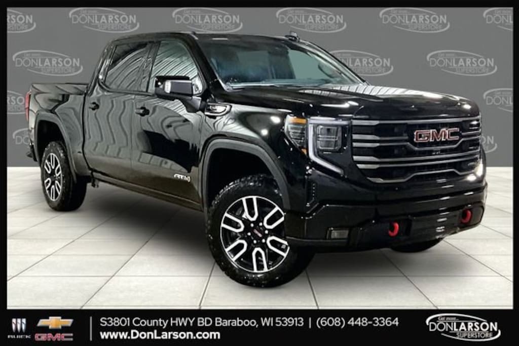 2026 GMC Sierra 1500 AT4 10-Speed Automatic, 4WD, Jet Black With Kalahari Accents Leather, 10-Way Power Driver Seat Adjuster with Lumbar, 10-Way Power Passenger Seat Adjuster with Lumbar, 120-Volt Bed Mounted Power Outlet, 120-Volt Interior Power Outlet, 170 Amp Alternator, 2 Charge/Data USB Ports Inside Center Console, 2 Type-C Charge-Only Rear USB Ports, 2 USB Ports, 220 Amp Alternator, 3.23 Rear Axle Ratio, 4-Wheel Disc Brakes, 7 Speakers, ABS brakes, Air Conditioning, Alloy wheels, AM/FM radio: SiriusXM with 360L, Apple CarPlay/Android Auto, AT4 Preferred Package, AT4 Premium Package, Auto High-beam Headlights, Auto-dimming door mirrors, Auto-dimming Rear-View mirror, Auto-Locking Rear Differential, Automatic Emergency Braking, Automatic temperature control, Auxiliary External Transmission Oil Cooler, Bed View Camera, Black Badging Package, Black Chrome Grille Insert Bars, Black GMC Emblems, Black Sierra Nameplates, Block heater, Brake assist, Buckle to Drive, Bumpers: body-color, Color-Keyed Carpeting Floor Covering, Compass, Deep-Tinted Glass, Delay-off headlights, Driver door bin, Driver Memory, Driver vanity mirror, Dual Active Exhaust, Dual front impact airbags, Dual front side impact airbags, Electric Rear-Window Defogger, Electronic Stability Control, Emergency communication system: OnStar, External Engine Oil Cooling, Floor-Mounted Center Console, Following Distance Indicator, Forward Collision Alert, Front and Rear Black Molded Splash Guards, Front anti-roll bar, Front Bucket Seats, Front Center Armrest, Front dual zone A/C, Front fog lights, Front License Plate Kit, Front Pedestrian Braking, Front Premium Floor Liners with Removable Carpet Insert, Front Rain-Sensing Wipers, Front reading lights, Front wheel independent suspension, Fully automatic headlights, HD Surround Vision, Heated 2nd Row Outboard Seats, Heated door mirrors, Heated Driver and Front Outboard Passenger Seating, Heated front seats, Heated rear seats, Heated steering wheel, Heavy-Duty Air Filter, Hill Descent Control, Hitch Guidance, Hitch View, Illuminated entry, in-Vehicle Trailering System App, Integrated Trailer Brake Controller, IntelliBeam Automatic High Beam on/Off, Keyless Open and Start, Lane Keep Assist with Lane Departure Warning, LED Cargo Area Lighting, Low tire pressure warning, Memory seat, Multicolor 15 Diagonal Head-Up Display, Navigation System, Occupant sensing airbag, Off-Road High Clearance Step, Off-Road Suspension, OnStar Services Capable, Outside temperature display, Overhead airbag, Overhead console, Panic alarm, Passenger door bin, Passenger vanity mirror, Perforated Front Leather Seat Trim, Perimeter Lighting, Power Door Locks, Power door mirrors, Power driver seat, Power Front Passenger Windows with Express Up/Down, Power Front Windows with Driver Express Up/Down, Power passenger seat, Power Rake and Telescoping Steering Column, Power Rear Windows with Express Down, Power Sliding Rear Window with Rear Defogger, Power steering, Power Sunroof, Power windows, Preferred Equipment Group 4SB, Premium Bose 7-Speaker Sound System, Push Button Start, Radio data system, Radio: Premium GMC Infotainment Audio System, Rain sensing wipers, Rear Camera Mirror, Rear Cross Traffic Braking, Rear Pedestrian Detection, Rear Premium Floor Liners with Removable Carpet Insert, Rear reading lights, Rear seat center armrest, Rear step bumper, Rear Wheelhouse Liners, Rear window defroster, Red Recovery Hooks, Remote keyless entry, Remote Vehicle Starter System, Safety Alert Seat, Security system, SiriusXM with 360L Trial Subscription, Speed control, Speed-sensing steering, Split folding rear seat, Spray-on Pickup Bedliner with GMC Logo, Steering Wheel Audio Controls, Steering wheel mounted audio controls, Tachometer, Technology Package, Telescoping steering wheel, Theft Deterrent System (unauthorized Entry), Tilt steering wheel, Traction control, Price includes: $1750 - Purchase Allowance. Exp.