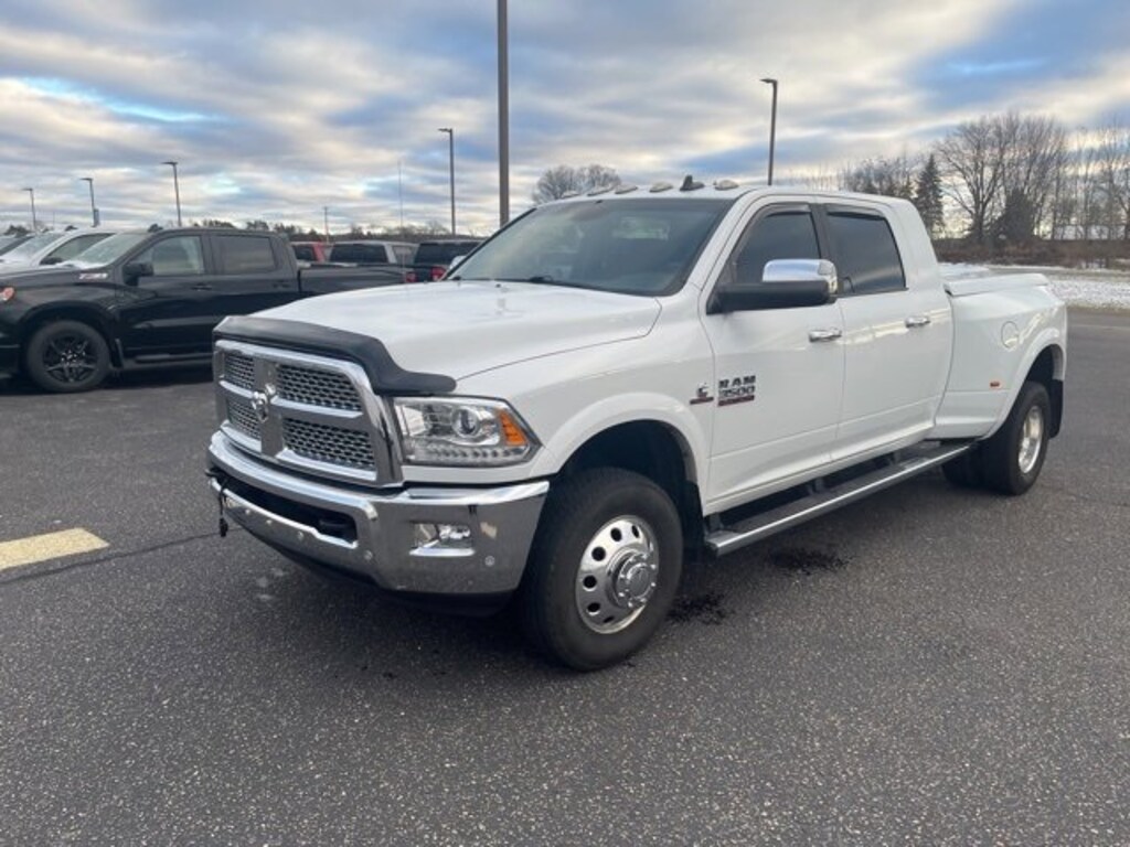 Recent Arrival! Sunroof / Moonroof, LOCAL TRADE IN, Backup Camera, Cruise Control, Heated Seats, Leather Seats, Power Locks, Power Windows, Trailer Hitch / Tow Package, AWD / 4WD / 4X4, 1 Yr. Trial (Registration Required), 10 Speakers, 115V Auxiliary Power Outlet, 180 Amp Alternator, 4-Wheel Disc Brakes, 5-Year SiriusXM Traffic Service, 5-Year SiriusXM Travel Link Service, 5th Wheel/Gooseneck Towing Prep Group, 6000# Front Axle w/Hub Ext, 8.4 Touchscreen Display, ABS brakes, Air Conditioning, Alloy wheels, AM/FM radio: SiriusXM, Audio memory, Auto-dimming Rear-View mirror, Automatic temperature control, Box & Rear Fender Clearance Lamps, Brake assist, Bumpers: chrome, Center Hub, Clearance Lamps, Compass, CTR Stop Lamp w/Cargo View Camera, Delay-off headlights, Driver door bin, Driver vanity mirror, Dual front impact airbags, Dual front side impact airbags, Dual Rear Wheel Fender Flare Tracking, Dual Rear Wheels, Electronic Stability Control, Electronically Controlled Throttle, Emergency communication system, For Details Visit DriveUconnect.com, Front anti-roll bar, Front Armrest w/Cupholders, Front Center Armrest w/Storage, Front dual zone A/C, Front fog lights, Front reading lights, Fully automatic headlights, Garage door transmitter, GPS Antenna Input, GPS Navigation, HD Radio, Heated door mirrors, Heated Front Seats, Heated front seats, Heated steering wheel, Hemi Badge, High Back Seats, I/P Mounted Auxiliary Switches, Illuminated entry, Integrated Voice Command w/Bluetooth, Keyless Enter-N-Go, Leather steering wheel, Leather Trim 40/20/40 Bench Seat, LED Bed Lighting, Low tire pressure warning, Media Hub (USB, AUX), Memory seat, Next Generation Engine Controller, Occupant sensing airbag, Outside temperature display, Overhead airbag, Overhead console, Panic alarm, ParkView Rear Back-Up Camera, Passenger door bin, Passenger vanity mirror, Power 10-Way Memory Driver & 6-Way Passenger Seats, Power Adjustable Pedals w/Memory, Power door mirrors, Power driver seat, Power Lumbar Adjust, Power passenger seat, Power steering, Power Sunroof, Power windows, Quick Order Package 2FH Laramie, Radio data system, Radio: Uconnect 3C NAV w/8.4 Display, Radio: Uconnect 3C w/8.4 Display, Rear 60/40 Split Folding Seat, Rear reading lights, Rear seat center armrest, Rear step bumper, Rear Wheel Spats, Rear Window Defroster, Remote keyless entry, Remote Proximity Keyless Entry, Remote Start System, Security system, SiriusXM Satellite Radio, SiriusXM Traffic, SiriusXM Travel Link, Speed control, Split folding rear seat, Spray In Bedliner, Steering wheel mounted audio controls, Tachometer, Tilt steering wheel, Tip Start, Tire Pressure Monitoring Delete, Traction control, Trip computer, Turn signal indicator mirrors, Uconnect Access, Variably intermittent wipers, Vendor Painted Cargo Box Tracking, Ventilated Front Seats, Ventilated front seats, Voltmeter, Wheels: 17 x 6.0 Polished Aluminum, Wheels: 18 x 8.0 Polished Aluminum.JUST GET MORE AT THE DON LARSON SUPERCENTER! Proudly servicing Baraboo, Wisconsin Dells, Portage, North Freedom, Middleton, Madison, Mauston, Lodi, Lake Delton, Waunakee, De Forest, Sun Prairie, and Reedsburg!Please call today to schedule your test drive on this ... 2017 Ram 3500 Laramie Cummins 6.7L I6 Turbodiesel Bright White Clearcoat